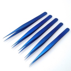 프리미엄 블루 컬러 또는 고객 선택 컬러 확장 눈썹 핀셋 5 개 속눈썹 핀셋 세트